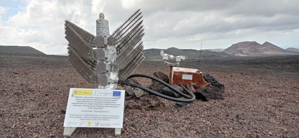 - Dispositivo de GTE capaz de suministrar energía eléctrica todo el año a las instalaciones de monitoreo de vigilancia volcánica, convirtiéndolas en autónomas. Este dispositivo ha de ser resistente al medio fumarólico ácido, que es el que impera normalmente en ambientes volcánicos activos y ser capaz de operar con temperaturas del foco caliente inferiores a 100 ºC. Por este motivo se instalará en el cráter del Teide, único volcán español que presenta estas características. Este tipo de dispositivo autónomo resultaría de gran utilidad, por ejemplo, en la basa antártica Gabriel de Castilla, ubicada sobre un volcán activo de alta peligrosidad y que solo puede ser monitoreado de noviembre a febrero, mientras dura la campaña antártica. De igual manera, podría comercializarse como estación autónoma de vigilancia volcánica en los volcanes activos del mundo, aspecto muy importante no resuelto en la actualidad.