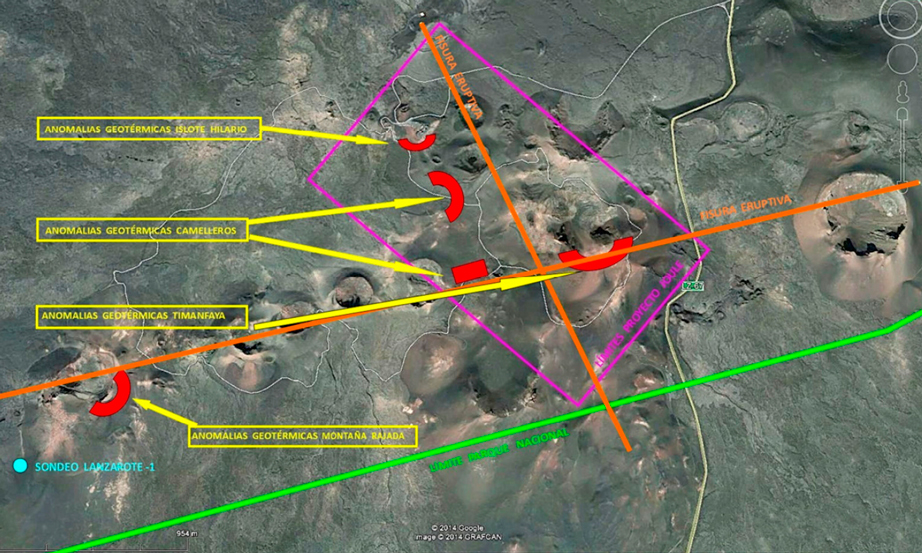 En este proyecto se pretende evaluar el potencial energético total de la zona volcánica implicada en las dos erupciones de los siglos XVIII y XIX en Lanzarote. En estudios anteriores se han identificado ya 11.700 m² de zonas térmicamente anómalas en Timanfaya, pero es necesario llevar a cabo un vuelo con infrarrojo térmico georreferenciado que permita delimitar la extensión total de la anomalía térmica.