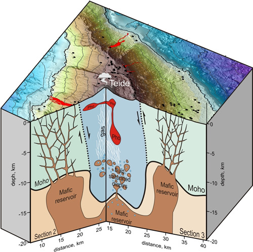 The results of this study have recently been published in the Journal of Geophysical Research, one of the most relevant international scientific journals in the field of geophysics edited by the American Geophysical Society (AGU). These results constitute an important tool to interpret the increase in seismicity in Tenerife and the emission of carbon dioxide by the Teide volcano, which INVOLCAN has detected since the end of 2016. This activity could be related to the slow ascent of a diapir, say a “bubble” of magma, located more than 10 km below Teide. Therefore, this new knowledge will be of great use for a better interpretation of the precursor signals of a possible eruptive process in Tenerife.