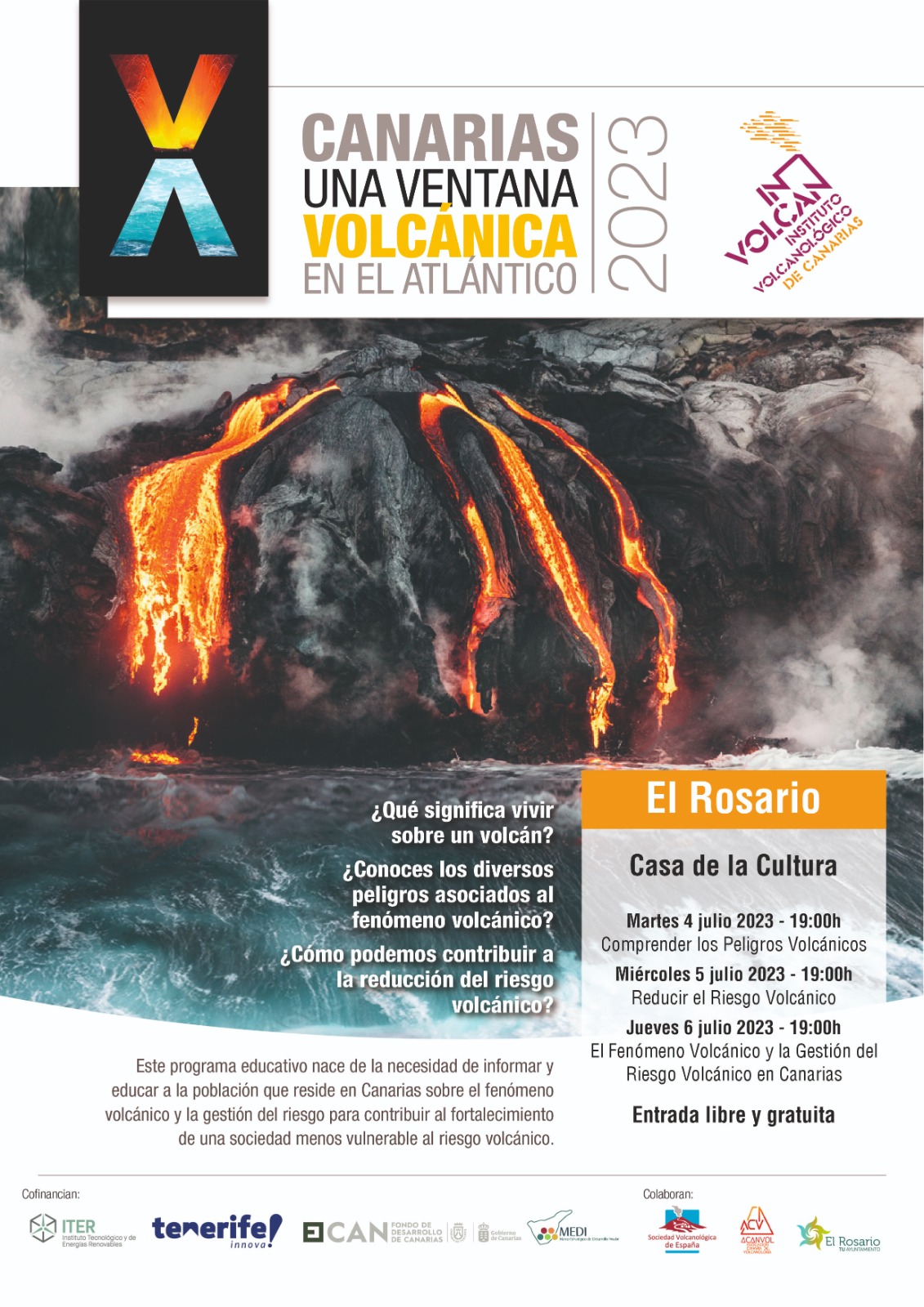“Canary Islands: A Volcanic Window in the Atlantic” was created to regularly inform and educate Canarian citizens about the various hazards associated with volcanic phenomena and the actions that should be taken to reduce volcanic risk. By doing so, we comply with the recommendations described in the Special Civil Protection and Emergency Response Plan for Volcanic Risk in the Autonomous Community of the Canary Islands (PEVOLCA) and the Tenerife Insular Action Plan for Volcanic Risk.