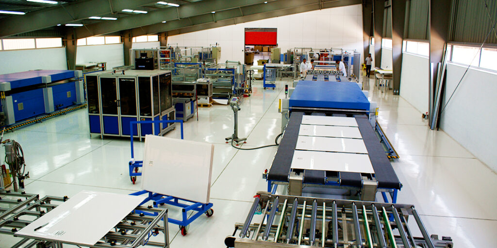 La fábrica se ubica en una nave de 125 metros de largo y 20 metros de ancho dividida en tres secciones, una destinada al almacenamiento de las materias primas, una segunda destinada a la fabricación y la tercera correspondiente al almacén de módulos fotovoltaicos. En total son 2500 m2, 1500 dedicados a almacenamiento de materias primas y módulos fotovoltaicos finalizados, y 1000 a la zona de fabricación, en la que se distinguen 2 líneas de montaje, norte y sur.