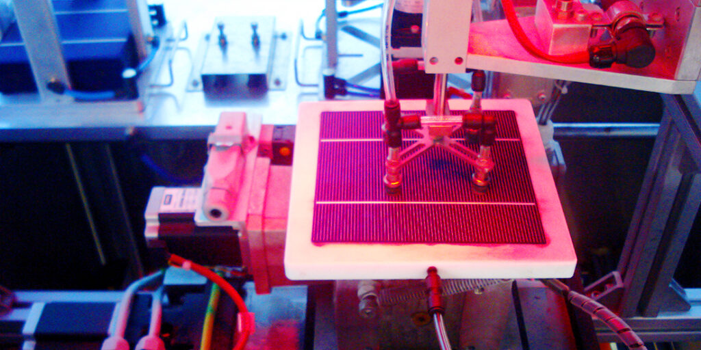 Cada línea consta de dos máquinas soldadoras de células, un robot de posicionamiento de células, mesas para la colocación de los cristales y revisión de los módulos y una laminadora para conformar el módulo. Ambas líneas confluyen en una máquina dedicada al testeo y clasificación de los módulos previos a la colocación del marco de aluminio y embalado.