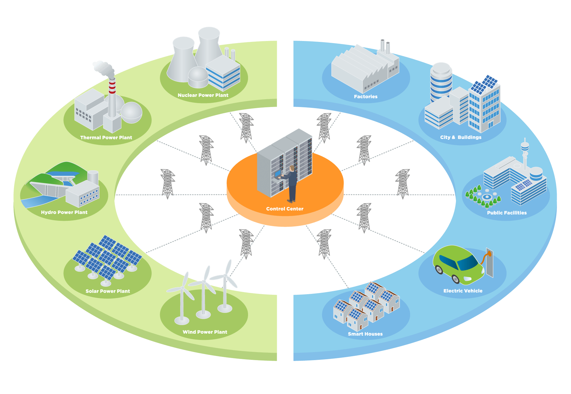 Uno de los cambios más determinantes de este nuevo paradigma de desarrollo de redes energéticas es el paso de un modelo centralizado de generación a un modelo distribuido en el que no solo los consumidores de energía se encuentran distribuidos a lo largo de la geografía, sino también los elementos de generación y posibles sistemas de acumulación de energía. La clave del éxito del sistema radica en la capacidad de gestionar la demanda y la generación mediante el uso de diferentes fuentes de producción y almacenamiento. Además, esta redistribución de los componentes del sistema eléctrico resulta favorable para el aumento de la implantación de energías renovables.